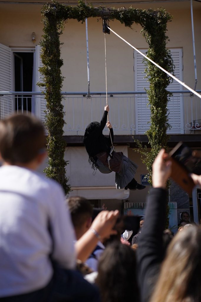 Μπορούν όμως να δωροδοκήσουν τους δήμιους και να τους κατεβάσουν από την κρεμάλα, αν τους δώσουν λίγα χρήματα για να εξασφαλίσουν το κρασί τους. Στον ίδιο χώρο προσφέρθηκαν κεράσματα και η καθιερωμένη φασολάδα από τον Σύλλογο Γυναικών Μεσσήνης, κρατώντας ζωντανό το πνεύμα της Καθαράς Δευτέρας.