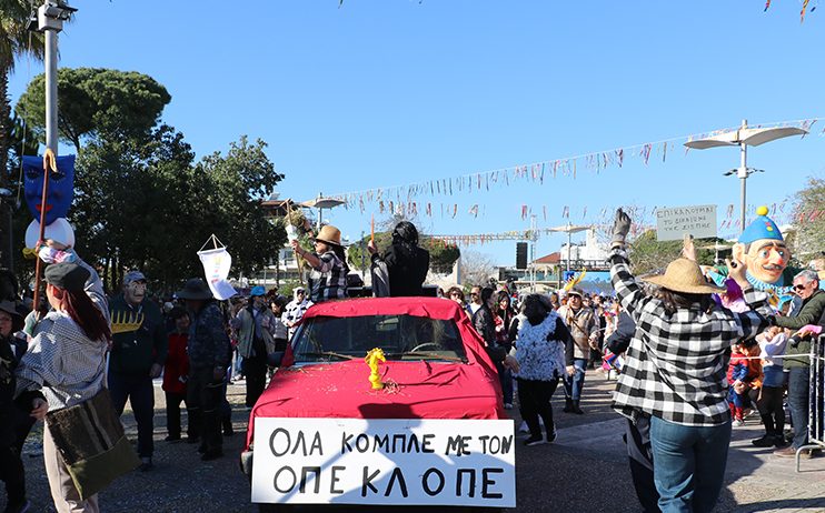 Η κεντρική πλατεία της πόλης γέμισε από νωρίς, με την κορύφωση να έρχεται στη μεγάλη καρναβαλική παρέλαση, όπου πολύχρωμα πληρώματα κάθε ηλικίας έδωσαν ρυθμό, φαντασία και σατιρική διάθεση σε έναν θεσμό που μετρά πλέον περισσότερο από ενάμιση αιώνα ζωής.
