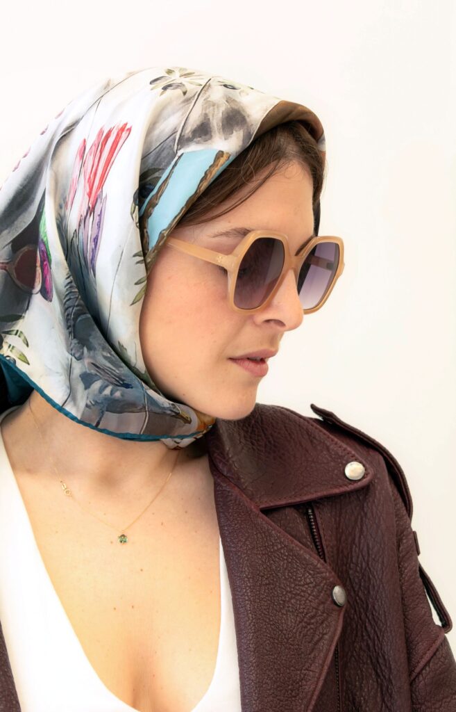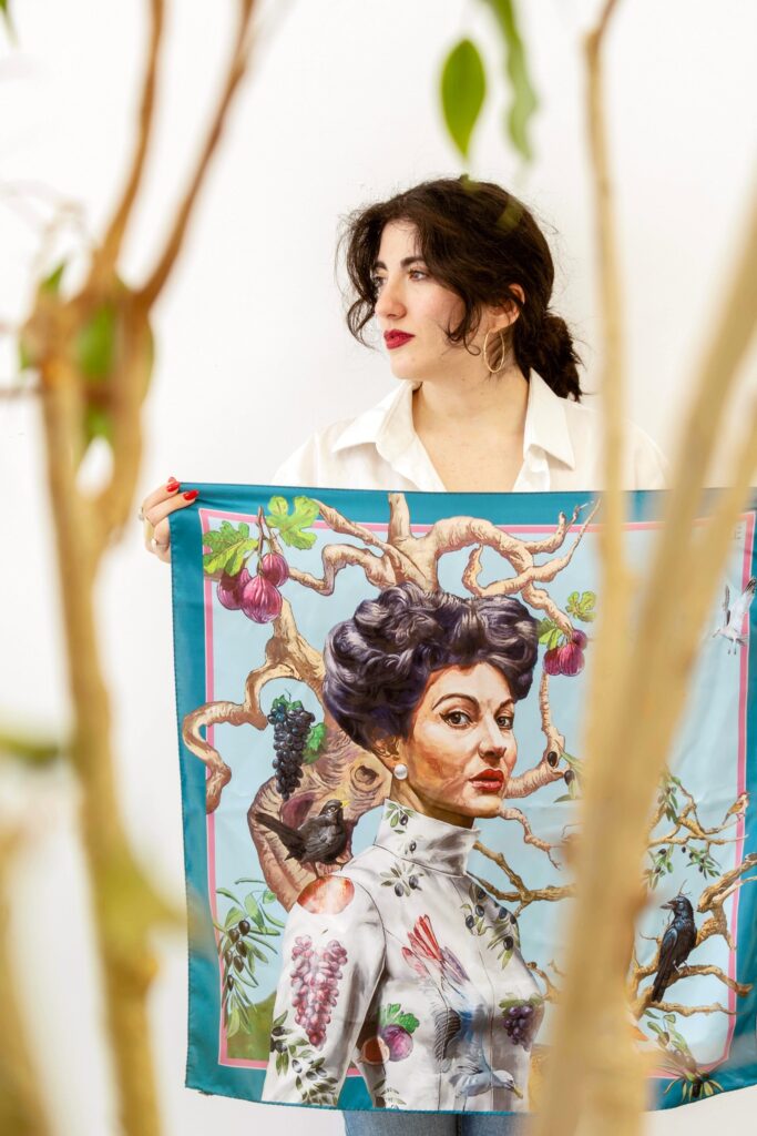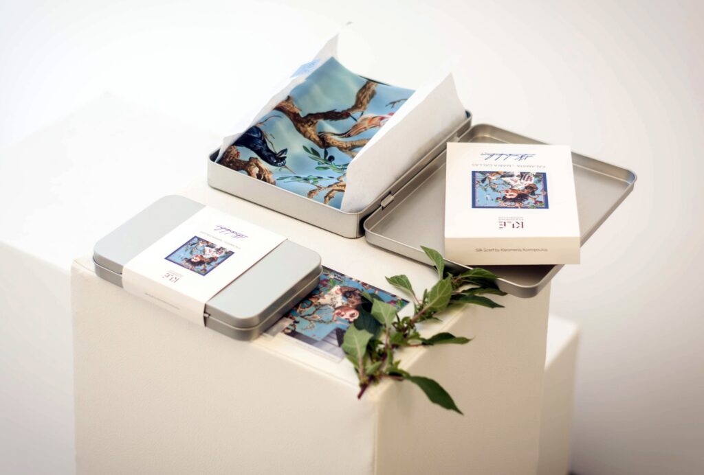 Πλέον, το βραβευμένο έργο αποκτά νέα διάσταση μέσα από το μεταξωτό μαντίλι, με τον καλλιτέχνη να επιχειρεί να φέρει την τέχνη πιο κοντά στην καθημερινότητα, μετατρέποντάς την σε φορέσιμο αντικείμενο που διατηρεί τον χαρακτήρα και τα μηνύματά της.