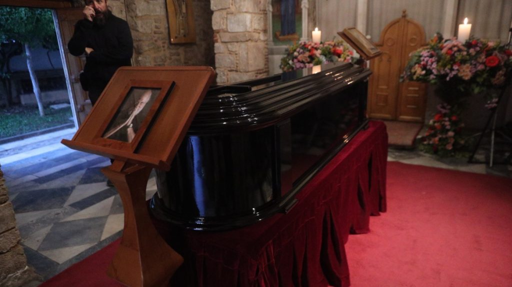 Η σορός του βρισκόταν από τις 8:30 έως τις 11:30 στο παρεκκλήσι της Μητρόπολης Αθηνών, όπου πλήθος κόσμου, πολιτικοί, καλλιτέχνες, συγγενείς και φίλοι, απεύθυναν το τελευταίο «αντίο» στον ανεπανάληπτο δημιουργό που σφράγισε την ελληνική μουσική.