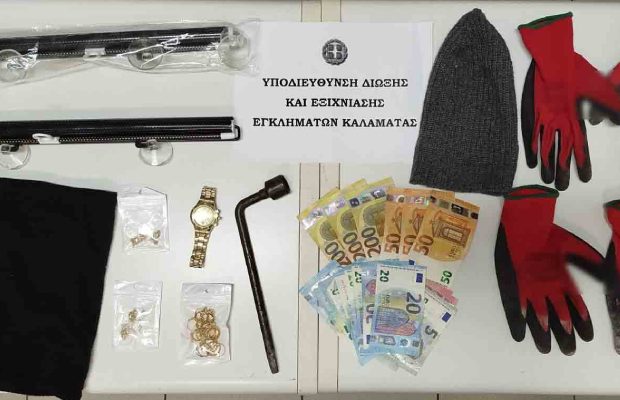 Πέντε περιπτώσεις κλοπών σε οικίες στην Καλαμάτα εξιχνιάστηκαν από την Υποδιεύθυνση Δίωξης και Εξιχνίασης Εγκλημάτων Καλαμάτας, έπειτα από μεθοδική και εμπεριστατωμένη αστυνομική έρευνα. Για τις υποθέσεις αυτές συνελήφθησαν δύο ημεδαποί, ηλικίας 27 και 37 ετών, σε βάρος των οποίων σχηματίσθηκε δικογραφία για συμμετοχή σε εγκληματική ομάδα και διακεκριμένες περιπτώσεις κλοπών, στην οποία περιλαμβάνονται και άγνωστοι συνεργοί τους.