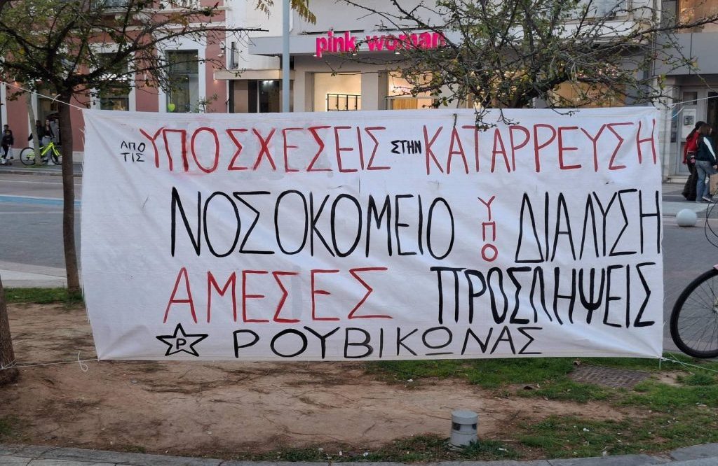 Παρέμβαση στην κεντρική πλατεία της Καλαμάτας πραγματοποίησαν μέλη της συλλογικότητας «Ρουβίκωνας», διανέμοντας ενημερωτικό υλικό με αιχμηρές αναφορές στην κατάσταση της δημόσιας υγείας στη Μεσσηνία. Στο φυλλάδιο γινόταν λόγος για «προδιαγεγραμμένη καταστροφή», με τους συντάκτες να υποστηρίζουν ότι η επιδείνωση των υπηρεσιών υγείας δεν αποτελεί συγκυριακό φαινόμενο αλλά αποτέλεσμα διαχρονικών επιλογών.