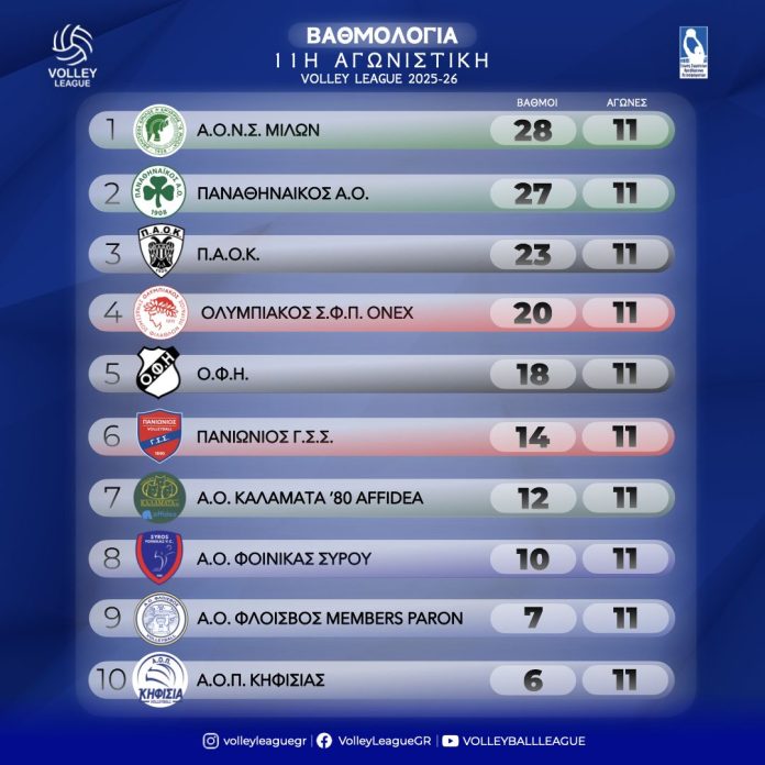 Το τρίποντο αυτό ανακατεύει για τα καλά την ουρά της βαθμολογίας, με τον Φλοίσβο να ανεβαίνει στην 9η θέση φτάνοντας τους 7 βαθμούς, να αφήνει ξανά τελευταίο τον Α.Ο.Π. Κηφισιάς με 6 και να πλησιάζει σε απόσταση αναπνοής τον Φοίνικα που έχει 10. Την ίδια στιγμή, σε πιο δύσκολη θέση μπαίνει πλέον και η Καλαμάτα, η οποία έμεινε στους 12 βαθμούς και βλέπει τη διαφορά της από τις επικίνδυνες θέσεις να μειώνεται αισθητά. Για τους Μεσσήνιους, το μοναδικό θετικό στοιχείο είναι ότι διατήρησαν το πλεονέκτημα της ισοβαθμίας απέναντι στον Φλοίσβο, καθώς στον αγώνα του πρώτου γύρου είχαν επικρατήσει με 3-0 σετ και συνολικούς πόντους 75-50.