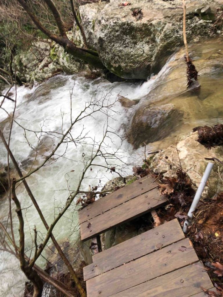 Η πρώτη από τις ξύλινες γέφυρες στην αρχή της διαδρομής προς το Πολυλίμνιο κατέρρευσε από την τελευταία κακοκαιρία, εξαιτίας της εγκατάλειψης και της έλλειψης φροντίδας από κάθε αρμόδια αρχή και φορέα.