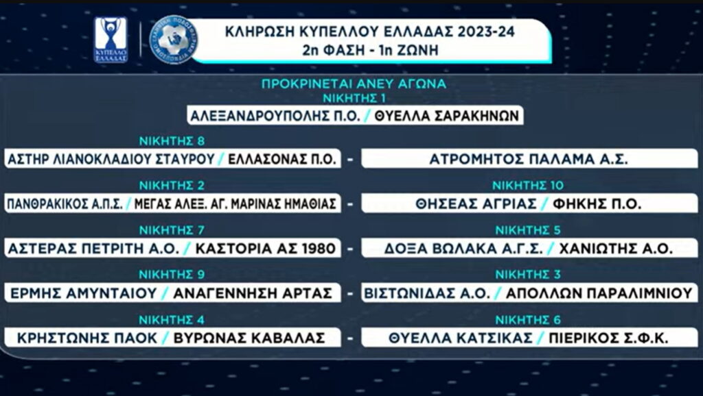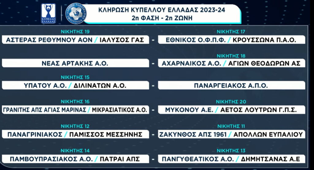 Στη 2η φάση πέρασαν δίχως αγώνα ο Ατρόμητος Παλαμά, η Νέα Αρτάκη και ο Παναργειακός.