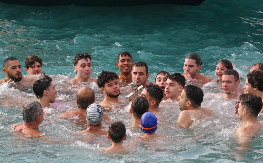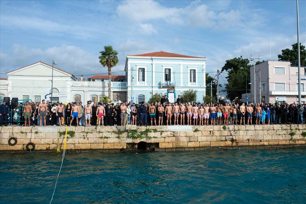 Συνολικά τριάντα κολυμβητές, ανάμεσά τους και αρκετοί ανήλικοι, βούτηξαν στα νερά του λιμανιού για την ανάσυρση του Τιμίου Σταυρού. Τυχερός της ημέρας αναδείχθηκε ο 16χρονος μαθητής του 3ου Γενικού Λυκείου Καλαμάτας, Ιωάννης Ζησιμόπουλος, ο οποίος ανέσυρε τον Σταυρό μέσα σε θερμό χειροκρότημα.