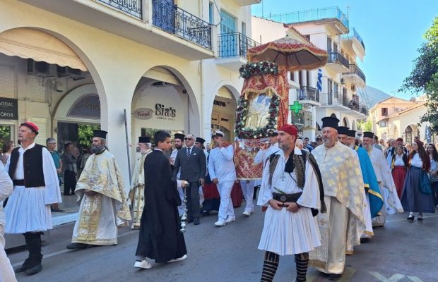 Ακολούθησε η λιτανεία της θαυματουργής εικόνας στους δρόμους της πόλης, την οποία λάμπρυνε με την παρουσία της η Μπάντα του Λιμενικού Σώματος.