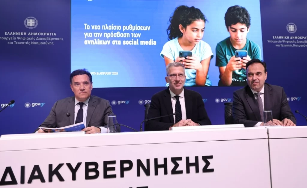 Το νέο πλαίσιο για τον περιορισμό της πρόσβασης ανηλίκων στα μέσα κοινωνικής δικτύωσης παρουσιάστηκε σε κοινή συνέντευξη Τύπου από τους Άδωνις Γεωργιάδης, Δημήτρης Παπαστεργίου και Άκης Σκέρτσος, οι οποίοι ανέλυσαν τόσο τη φιλοσοφία όσο και τα πρακτικά εργαλεία εφαρμογής του μέτρου.
