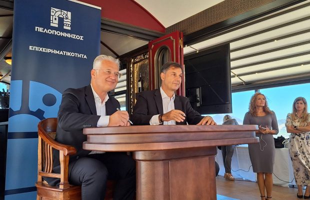 Το μέλλον, συνεπώς, είναι ευοίωνο για τις ελληνικές επιχειρήσεις. Όμως απαιτείται πολλή και συντονισμένη δουλειά. Χαίρομαι, λοιπόν, που μαζί με τον Περιφερειάρχη Δημήτρη Πτωχό υπογράψαμε σήμερα το μοντέλο και το πλαίσιο συνεργασίας, ώστε χέρι-χέρι, Περιφέρεια και κυβέρνηση, να στηρίξουμε ακόμα πιο δυναμικά τις επιχειρήσεις της Πελοποννήσου».
