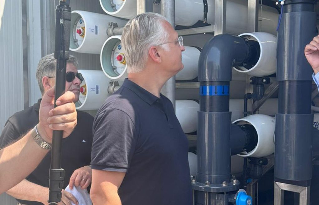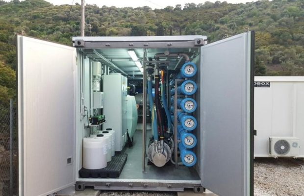 Πρόκειται για μονάδα τεχνολογίας αντίστροφης όσμωσης, εγκατεστημένη σε containers, η οποία θα χωροθετηθεί στη θέση «Άγιος Μύρων», σε άμεση γειτνίαση με υφιστάμενη γεώτρηση, και θα υποστηρίζεται από δεξαμενές αποθήκευσης.