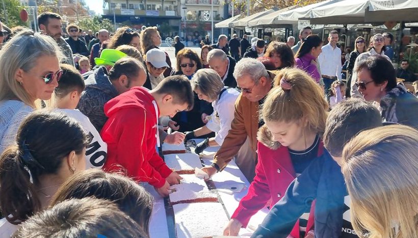 Τη Βασιλόπιτά του έκοψε σήμερα, στις 12 το μεσημέρι, ο Σύλλογος Εστίασης Μεσσηνίας στην κεντρική πλατεία της πόλης, συνεχίζοντας την καθιερωμένη παράδοση της γιγαντιαίας Βασιλόπιτας. Η εντυπωσιακή πίτα, μήκους 18 μέτρων, ευλογήθηκε από ιερέα και μοιράστηκε σε 2.500 κομμάτια στους παρευρισκόμενους.