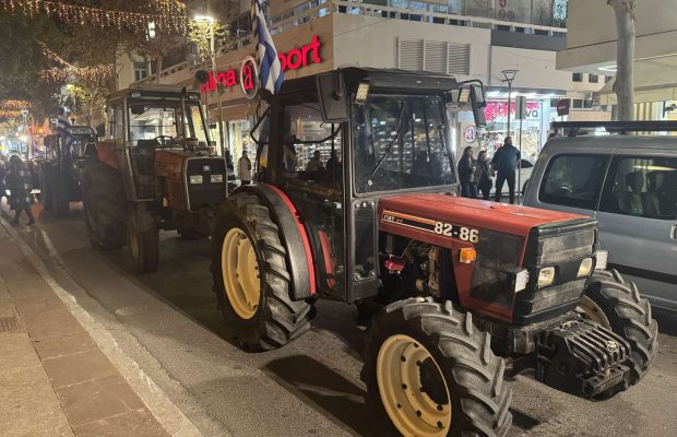 Δυναμική παρουσία στο κέντρο της Καλαμάτα πραγματοποίησαν χθες το βράδυ οι αγρότες και κτηνοτρόφοι της Μεσσηνίας, οι οποίοι συμμετέχουν στις κινητοποιήσεις των τελευταίων ημερών. Λίγο μετά τις 7, σε μια πρωτόγνωρη και δυναμική πορεία, δεκάδες τρακτέρ από το μπλόκο στον κόμβο της Θουρίας, στον «αυτοκινητόδρομο του Μορέα» εισήλθαν οργανωμένα στο κέντρο της πόλης και στάθμευσαν μπροστά από το χριστουγεννιάτικο δέντρο, στην κεντρική πλατεία, όπου παρέμειναν για περίπου μισή ώρα.