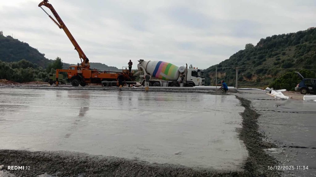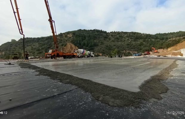 Η διαδικασία εξελίσσεται σύμφωνα με τον σχεδιασμό, με στόχο τη διασφάλιση της αντοχής και της μακροχρόνιας λειτουργικότητας της κατασκευής.