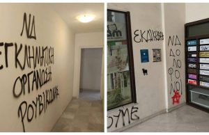 Επίθεση του «Ρουβίκωνα» στα γραφεία της Νέας Δημοκρατίας στην Καλαμάτα