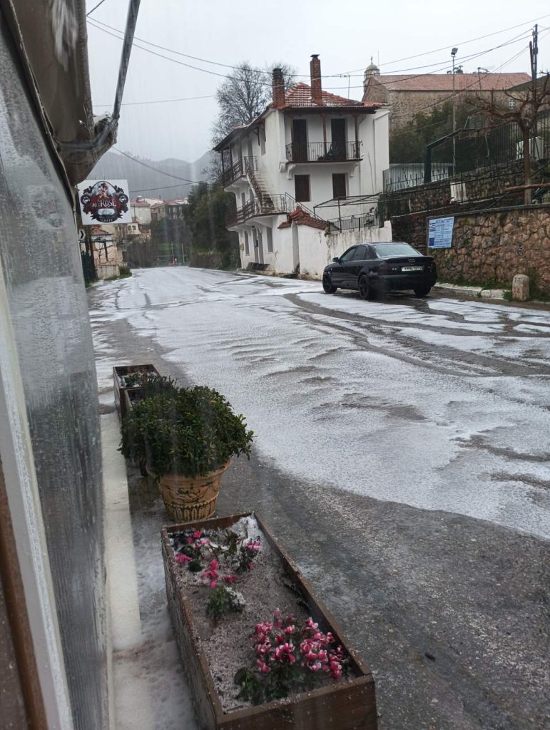Ισχυρά καιρικά φαινόμενα έπληξαν το μεσημέρι την περιοχή της Αλαγονίας, καθώς η κακοκαιρία «Erminio» συνεχίζει την επέλασή της στον ορεινό όγκο του Ταϋγέτου. Η έντονη χαλαζόπτωση προκάλεσε προβλήματα, με το χαλάζι να καλύπτει δρόμους και καλλιέργειες, δημιουργώντας εικόνες έντονης κακοκαιρίας.