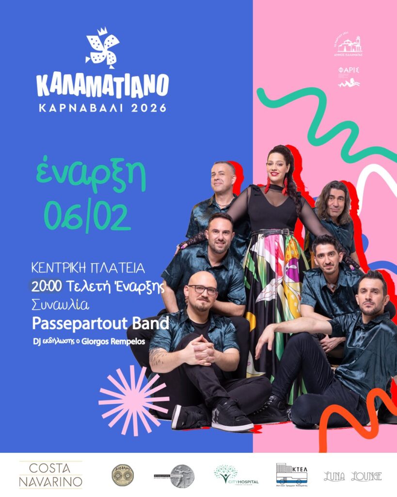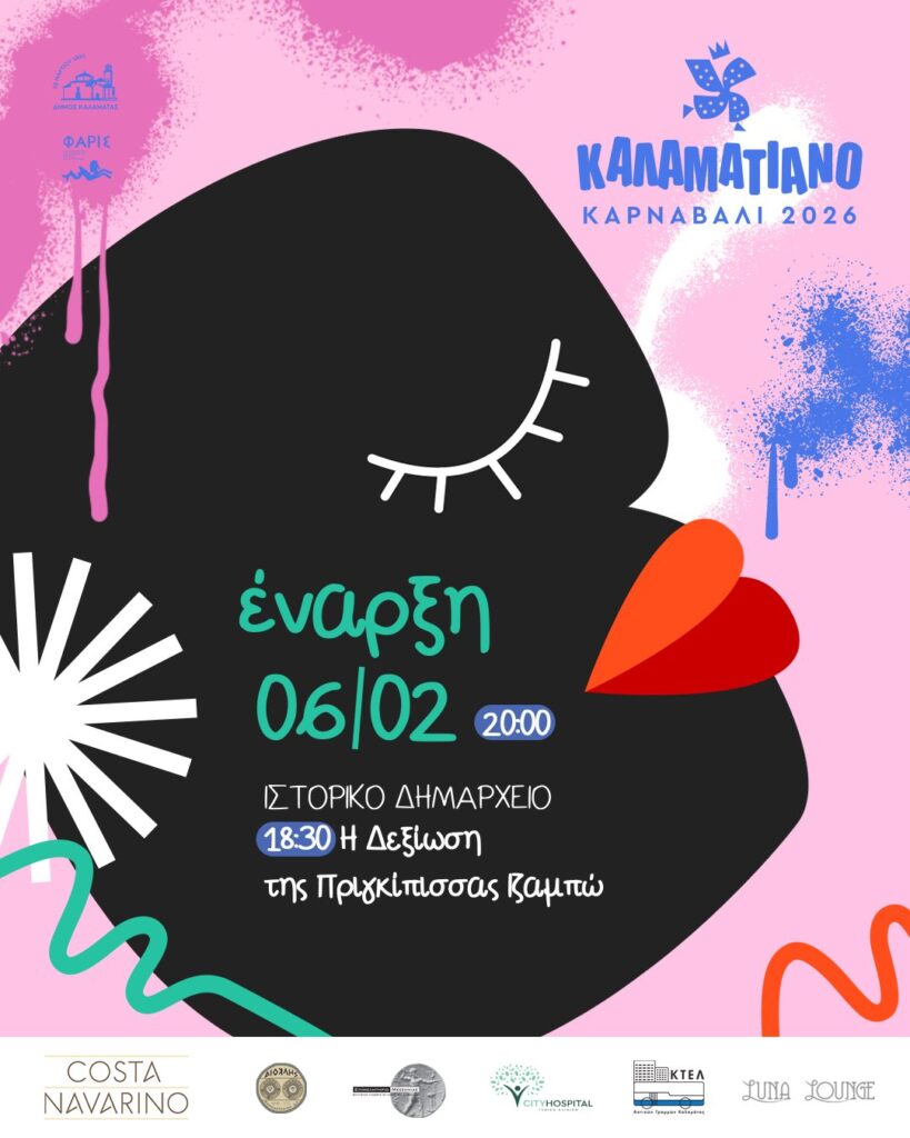 Το επίσημο έναυσμα της φετινής αποκριάτικης περιόδου δίνεται με τη Μεγάλη Τελετή Έναρξης του 13ου Καλαματιανού Καρναβαλιού, την Παρασκευή 6 Φεβρουαρίου 2026, στις 20:00, στην Κεντρική Πλατεία Καλαμάτας, έναντι του Πνευματικού Κέντρου.