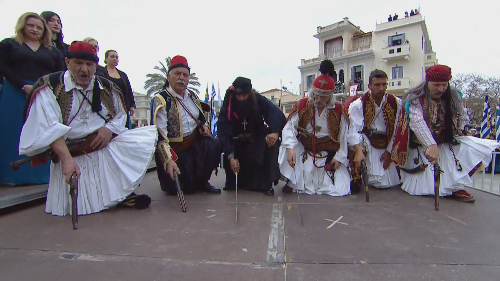 Αμέσως μετά τον όρκο των Αρχηγών της Επανάστασης, αλλά και στη συνέχεια, όσοι κρατούσαν αντίγραφα παλαιών όπλων «βρόντηξαν το καριοφίλι», αναπαριστώντας όσα συνέβησαν κατά την έναρξη της Επανάστασης.