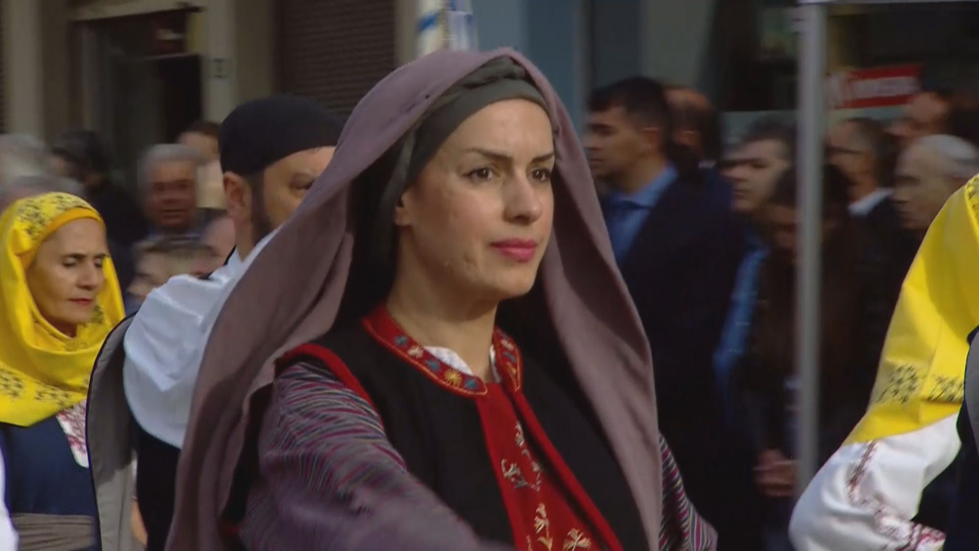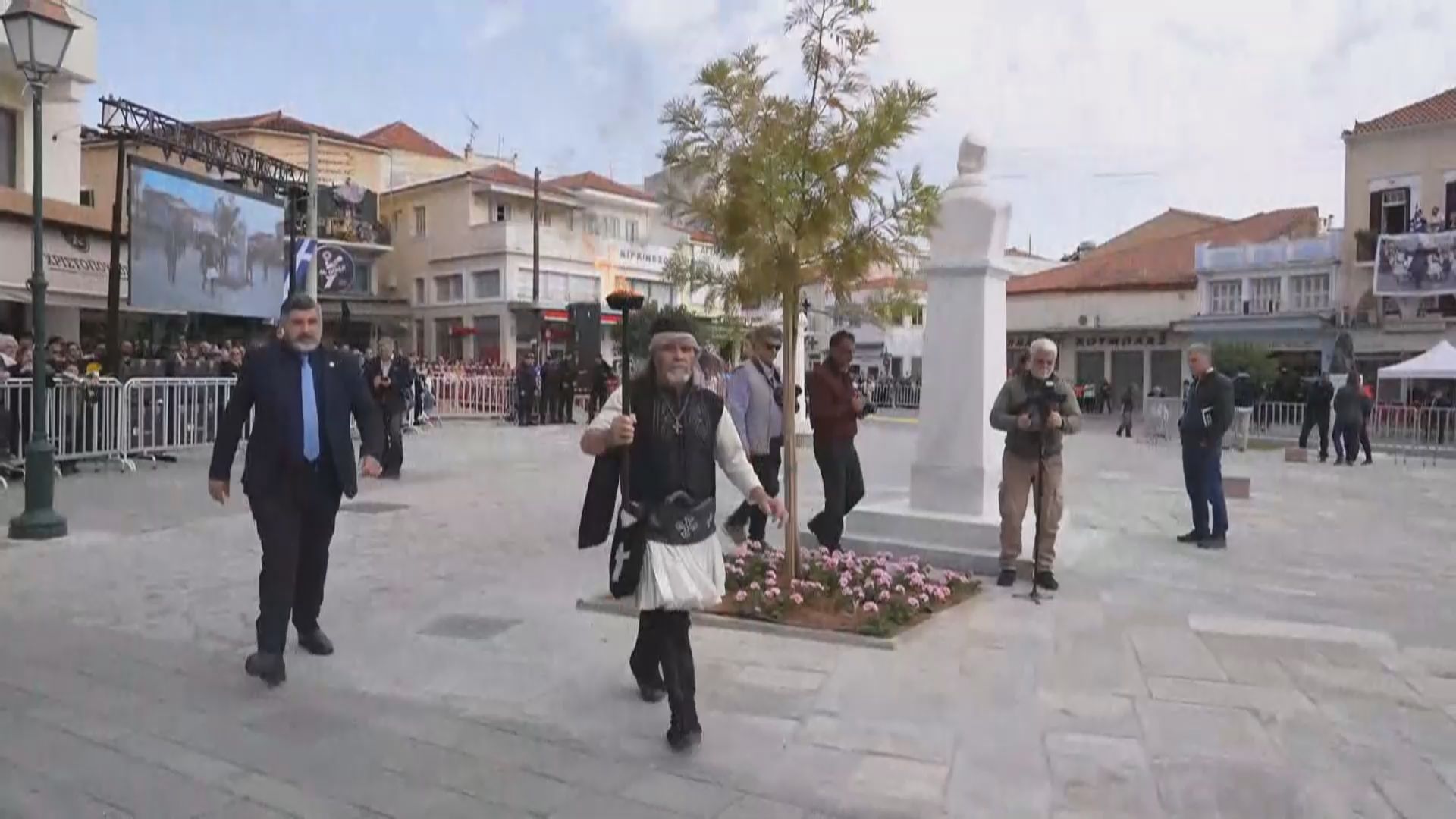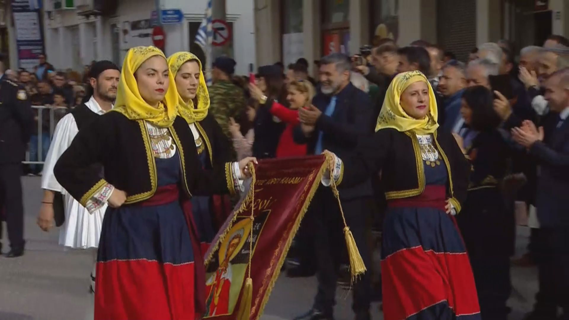 Τη σημαία συνόδευαν η Δημοτική Φιλαρμονική Καλαμάτας και άγημα από το 9ο Σύνταγμα Πεζικού. Μέλη Πολιτιστικών Συλλόγων, που έφεραν εθνικές ενδυμασίες, υποδέχονταν την πομπή με χειροκροτήματα και πυροβολισμούς με αντίγραφα όπλων του 1821, καθ’ όλη τη διαδρομή μέχρι την πλατεία.
