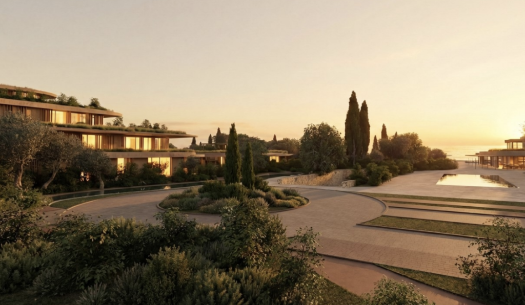 Η ανάπτυξη προτείνεται σε παραθαλάσσια έκταση συνολικής επιφάνειας 205.743 τετραγωνικών μέτρων και περιλαμβάνει ξενοδοχειακή μονάδα 5 αστέρων καθώς και πολυτελείς κατοικίες υψηλών προδιαγραφών, με συνολική επιφάνεια δόμησης περίπου 39.700 τ.μ.