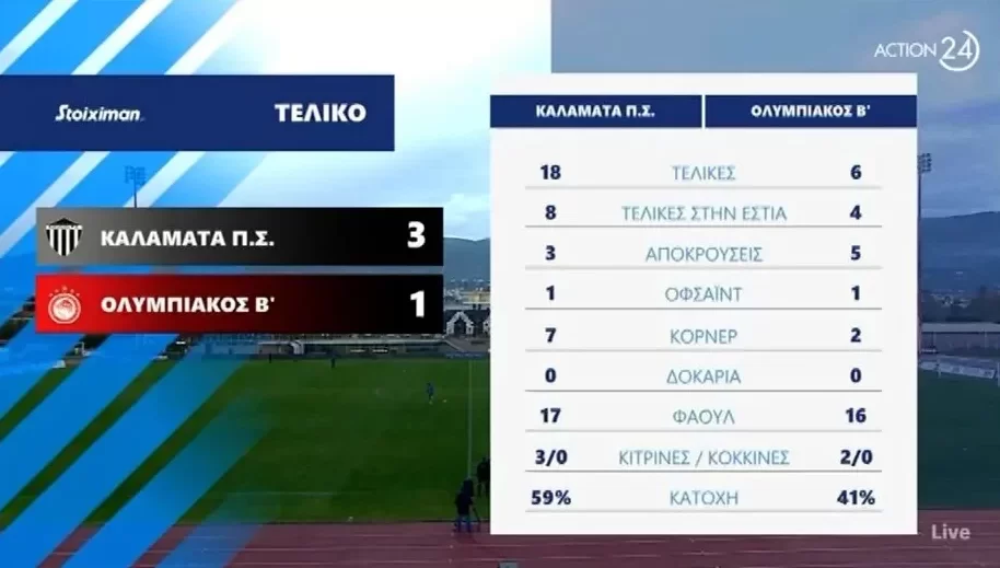 Super League 2: Καλαμάτα-Ολυμπιακός Β΄ 3-1| Συνεχίζει αήττητη κάνοντας ένα ακόμη βήμα για τον τίτλο